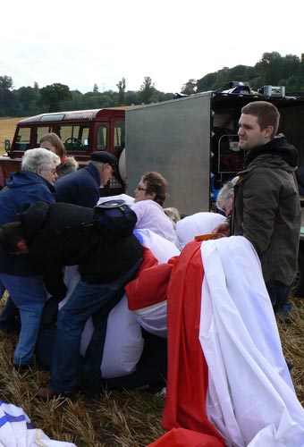 | It is fascinating to watch: first they fill the balloon with air, using a very powerful fan | ||