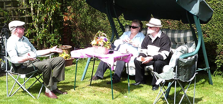 | IMC hosted a tea party in Petersfield on a lovely warm sunny afternoon - it was very pleasant to eat cake and drink tea with friends - and support a worthy cause. Above Lis chats with | |