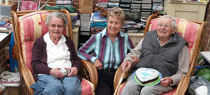 | Chris baked her Dad a cake - decorated with a Mosquito since Phil had been a navigator on Mosquitoes |