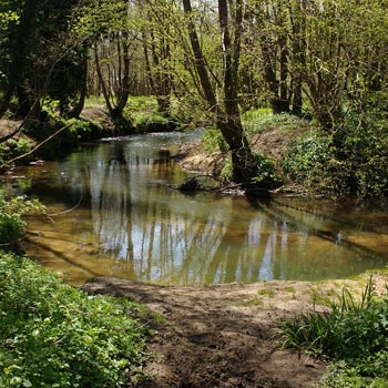 | This quiet river, passing through a wood, is less than half a mile from our house | ||