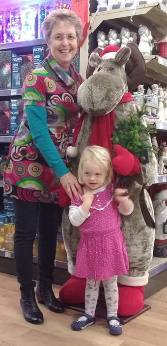 | Liz and Alice with a reindeer | We popped up to Fulbourn to see Dorothy | |