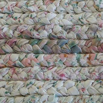 | Bobs checks that they are doing it right! | Very clever: strips of cloth plaited together in strips then sewn together to form a rug | |