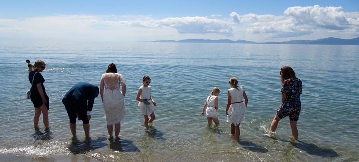 | After the ceremony, since it was so hot, many people took a dip in the sea! | ||