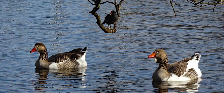 | A small group of call ducks which were dumped on the pond - but they seem to be doing well | ||