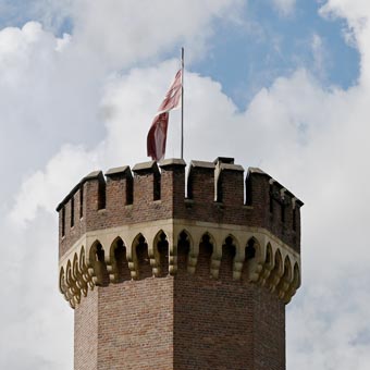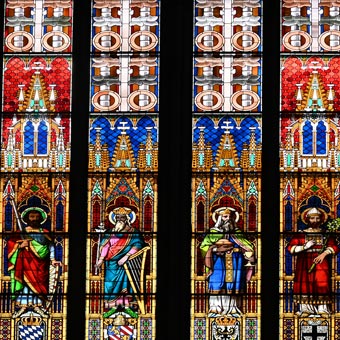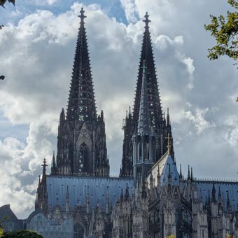 | Stain-glass windows inside the Cathedral | The Malakoff Tower, or Malakoffturm, a historic defensive tower located in Cologne, by the Rhine river bank. | ||