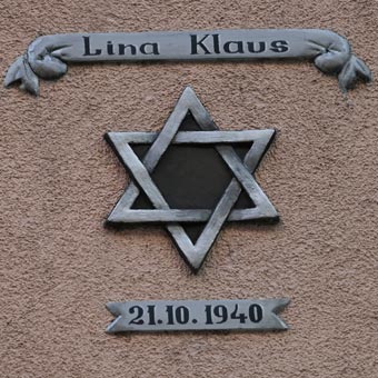 This photograph is a memorial plaque for Karoline (Lina) Klaus (born 1865) on Maingasse 3 in Wertheim. The plaque indicates her deportation on October 21, 1940, during the Holocaust. She was one of many individuals persecuted by the Nazis. The date marks the day of her deportation. |