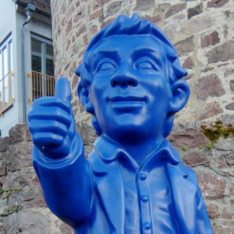| The blue sculpture known as "The Optimist" by German conceptual artist Ottmar Hörl.