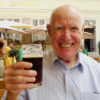 | Bamberg is world-renowned for its unique beer culture, particularly its famous Rauchbier (smoked beer). We tried a glass, but being unadventurous, we only bought one glass between us - so it's the same glass in both photographs. Actually is WAS lovely and we detected bacon as well as smoke! | |||