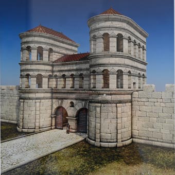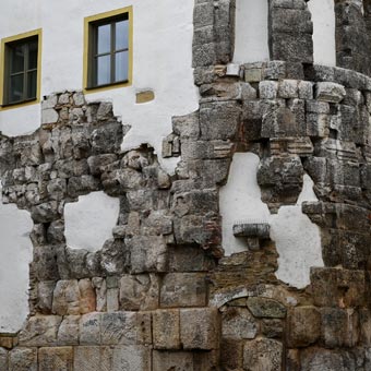 | The Porta Praetoria in Regensburg, Germany, which are the preserved remains of the north gate of the Roman legionary fortress Castra Regina. The gate was built in AD 179 by Emperor Marcus Aurelius and is one of the few surviving Roman gates north of the Alps. It is considered one of Germany's oldest surviving stone structures, dating back to the 2nd century. The Roman ruins have been incorporated into the current architecture of the city, specifically into the wall of a brewery that was built after 1650. The remains were rediscovered in 1885 after the brewery was demolished. |