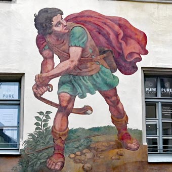 | The Goliathhaus (Goliath House), a historic building in Regensburg, famous for its large facade mural. | Colourful character! | ||