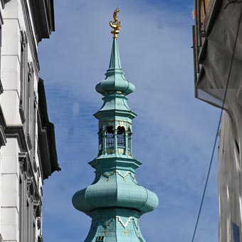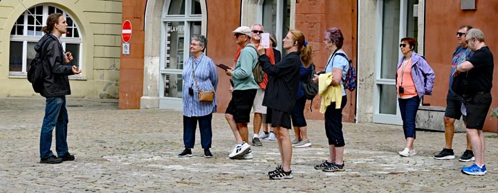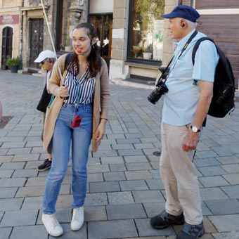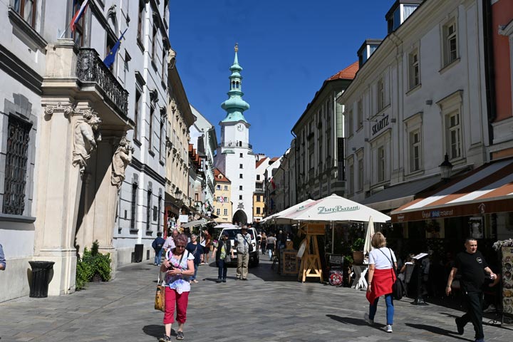 | Michael’s Tower stands as a prominent landmark at the heart of Bratislava, boasting a rich history spanning over seven centuries. It stands as the sole survivor among the original four city gates, predating Bratislava’s official city status granted in 1291 when it received its city privileges. | Our tour guide in Bratislava with John | ||