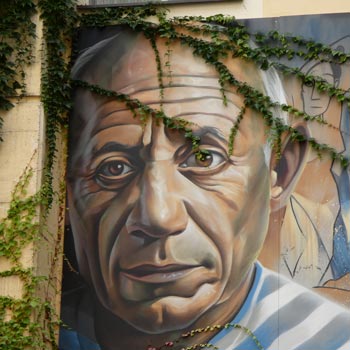 | A mural depicting artist Pablo Picasso. | Liz - but who is she with? | ||