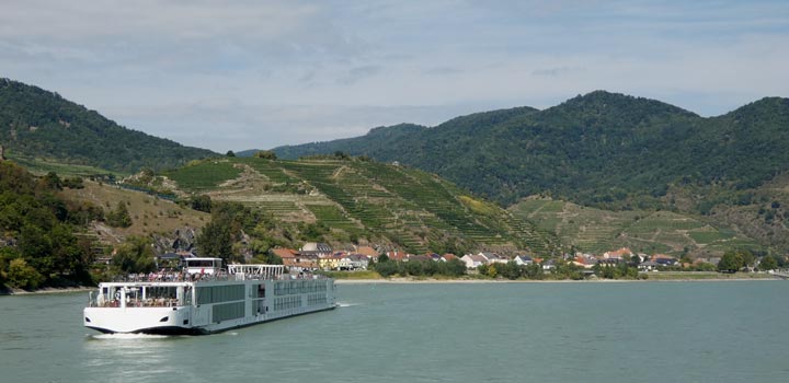 | Another cruise boat - notice the vineyards on the river bank | |||