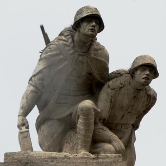 | The Soviet War Memorial Vienna lost a quarter of its building due to war activity; 270,000 Viennese were homeless because 90,000 flats were destroyed by Allied bombings and the fights in the city. The gas and electricity production had collapsed, even the canal system was nearly completely destroyed and 2,000 kilometres of water pipes were bombed. |