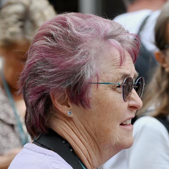 | A typical guided tour: Annie and Liz in the middle of the photograph | |||