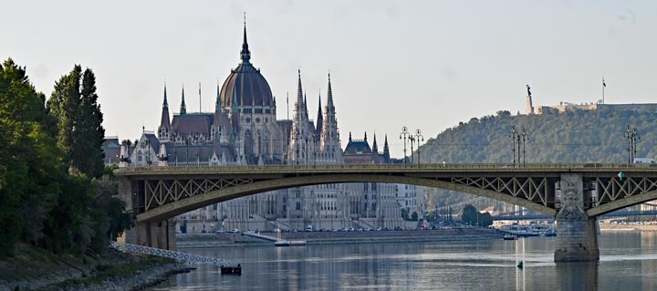 | The Hungarian Parliament Building in Budapest This photograph shows the Hungarian Parliament Building one of the most iconic landmarks in Hungary. The photograph is taken from the Danube River, with the Margaret Bridge in the foreground. The Parliament Building, completed in 1904, is a stunning example of Neo-Gothic architecture, with a central dome and numerous spires. It is located on the Pest side of the city and serves as the seat of the National Assembly of Hungary. |
