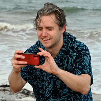| Tim, always ready to take a photograph, no matter what the conditions are! |
